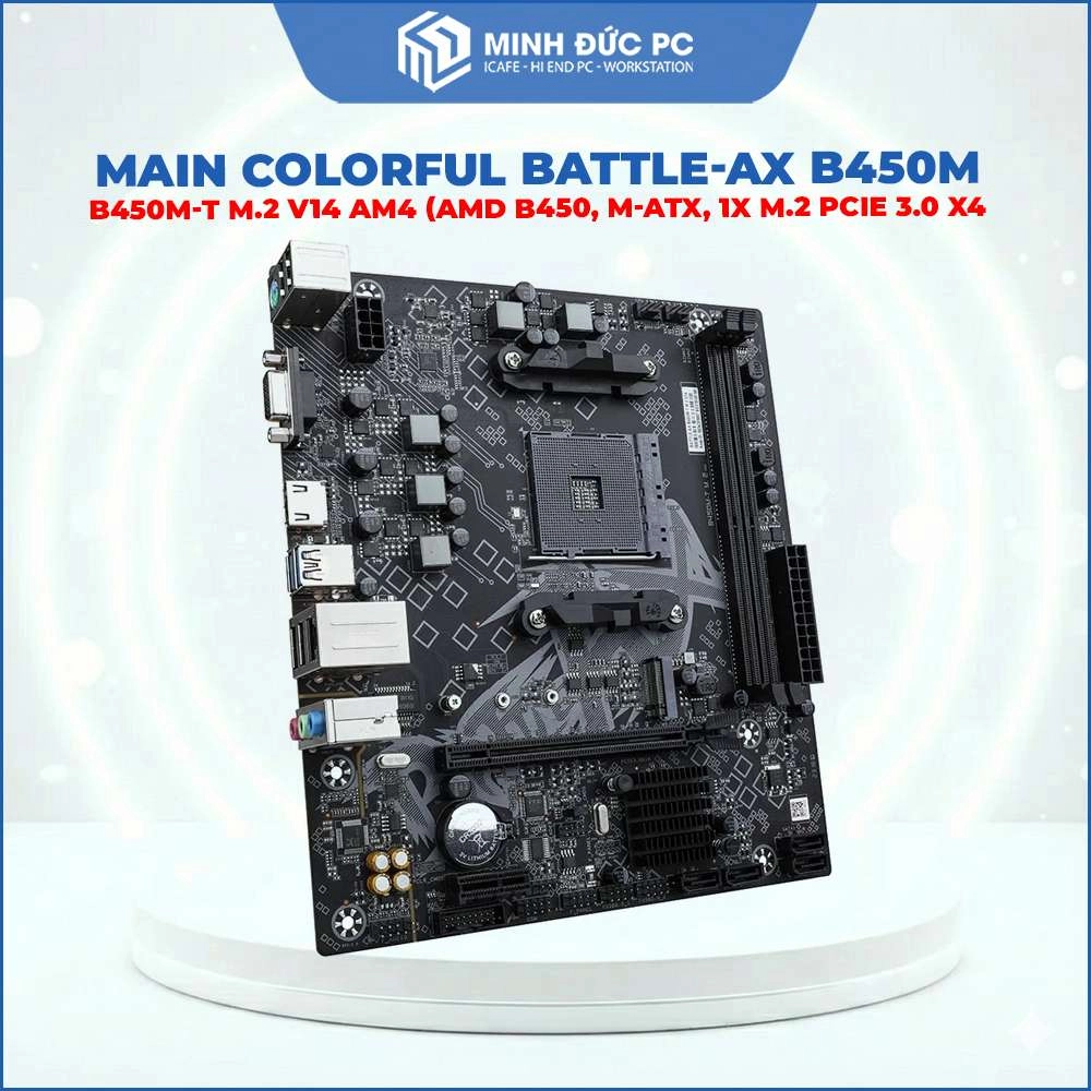 Với phương châm làm ăn gắn bó lâu dài, phát triển bền vững trong lòng người tiêu dùng. Minh Đức Cam kết chỉ bán Main COLORFUL BATTLE-AX B450M-T M.2 V14 AM4 (AMD B450, M-ATX, 1x M.2 PCIe 3.0 x4) hàng chuẩn.